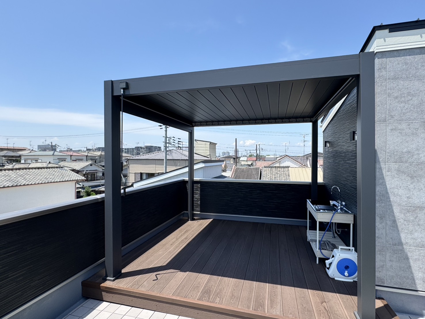ブースにパーゴラを設置。おしゃれな空間で皆様をお迎えし高品質なのに驚きの価格。問い合わせ殺到中!!